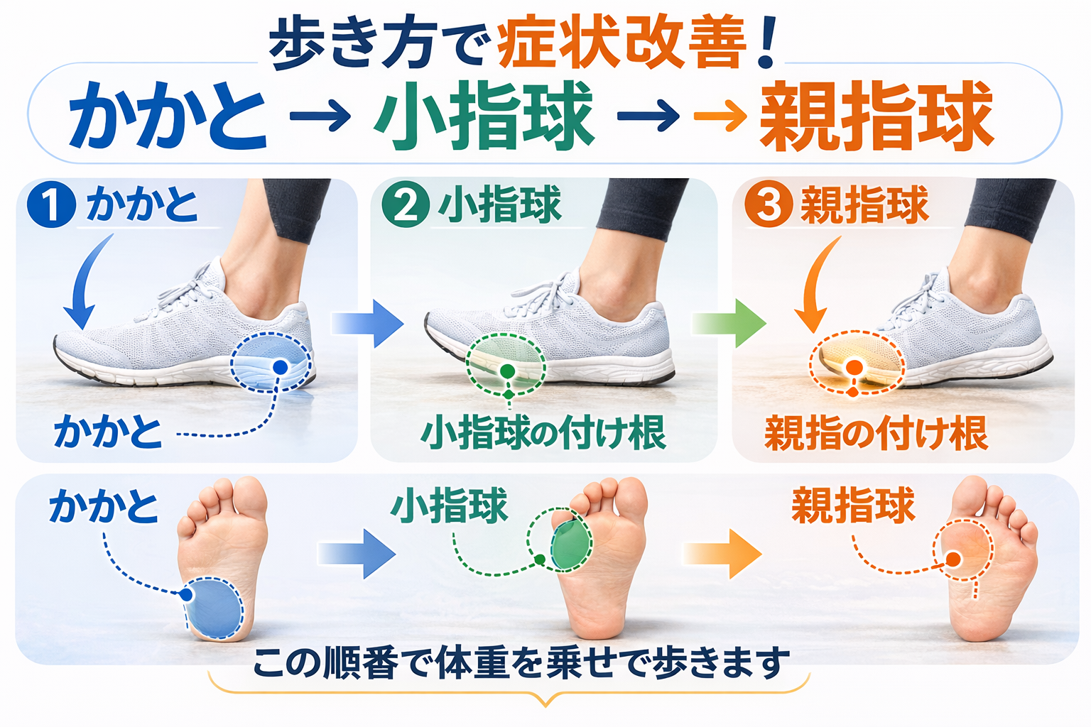かかと → 小指球 → 親指球